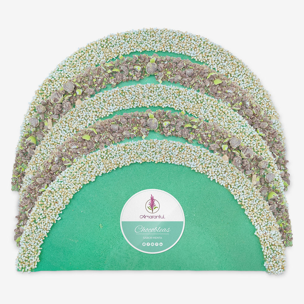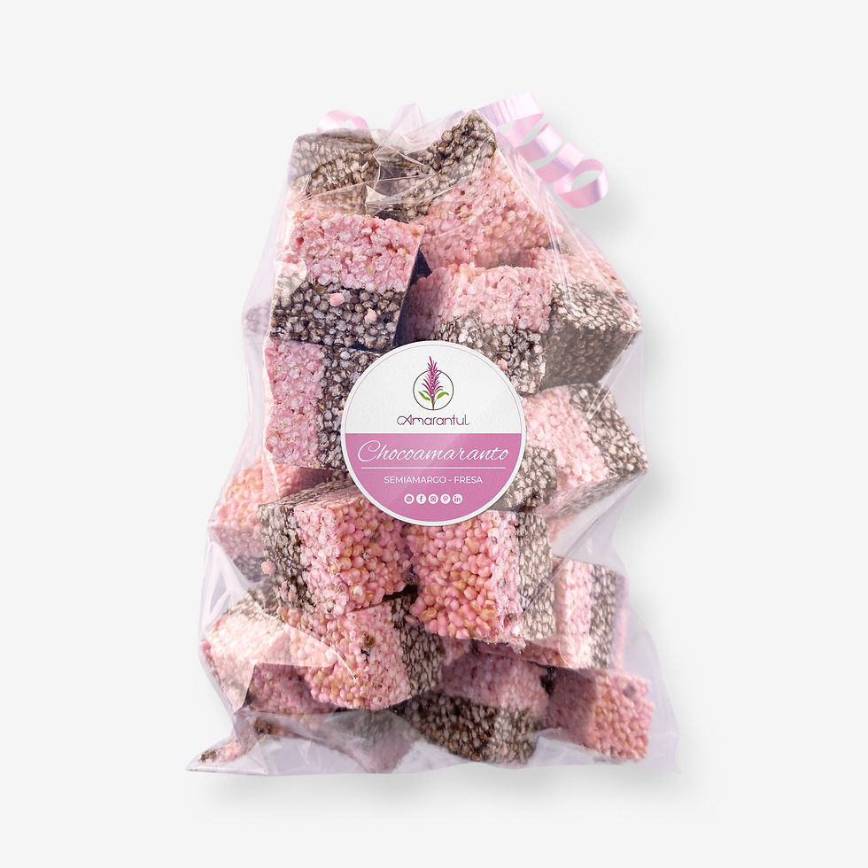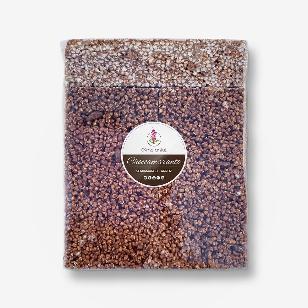 Dulce 100% mexicano elaborado con semillas de amaranto tostadas con chocolate de diferentes sabores como semi amargo, lácteo, nuez, menta y fresa, acompañado de semillas como nuez, arándano, cacahuate y arroz inflado.